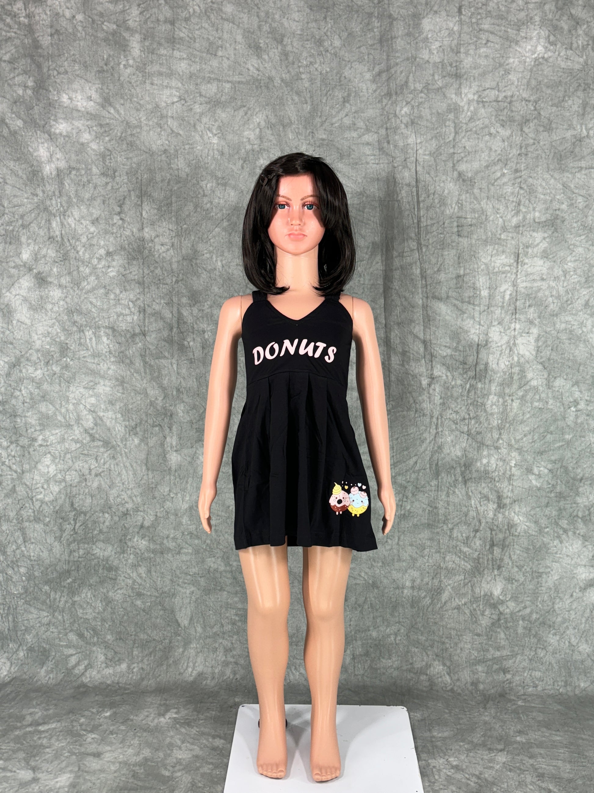 Kids Cotton Sleeveless Frock - Black