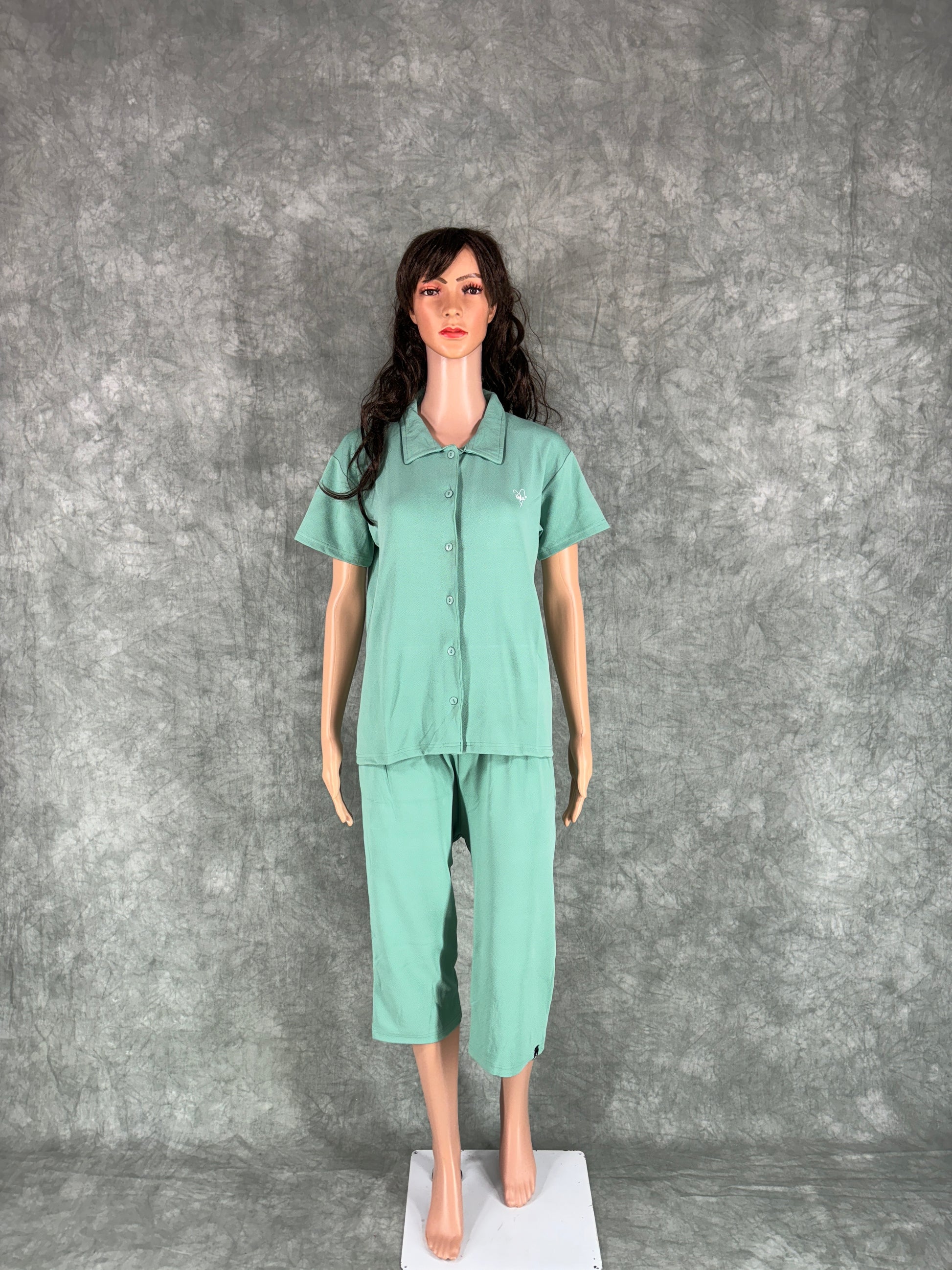 Miraya Collar Neck Capri Set for Women - Pastel Green