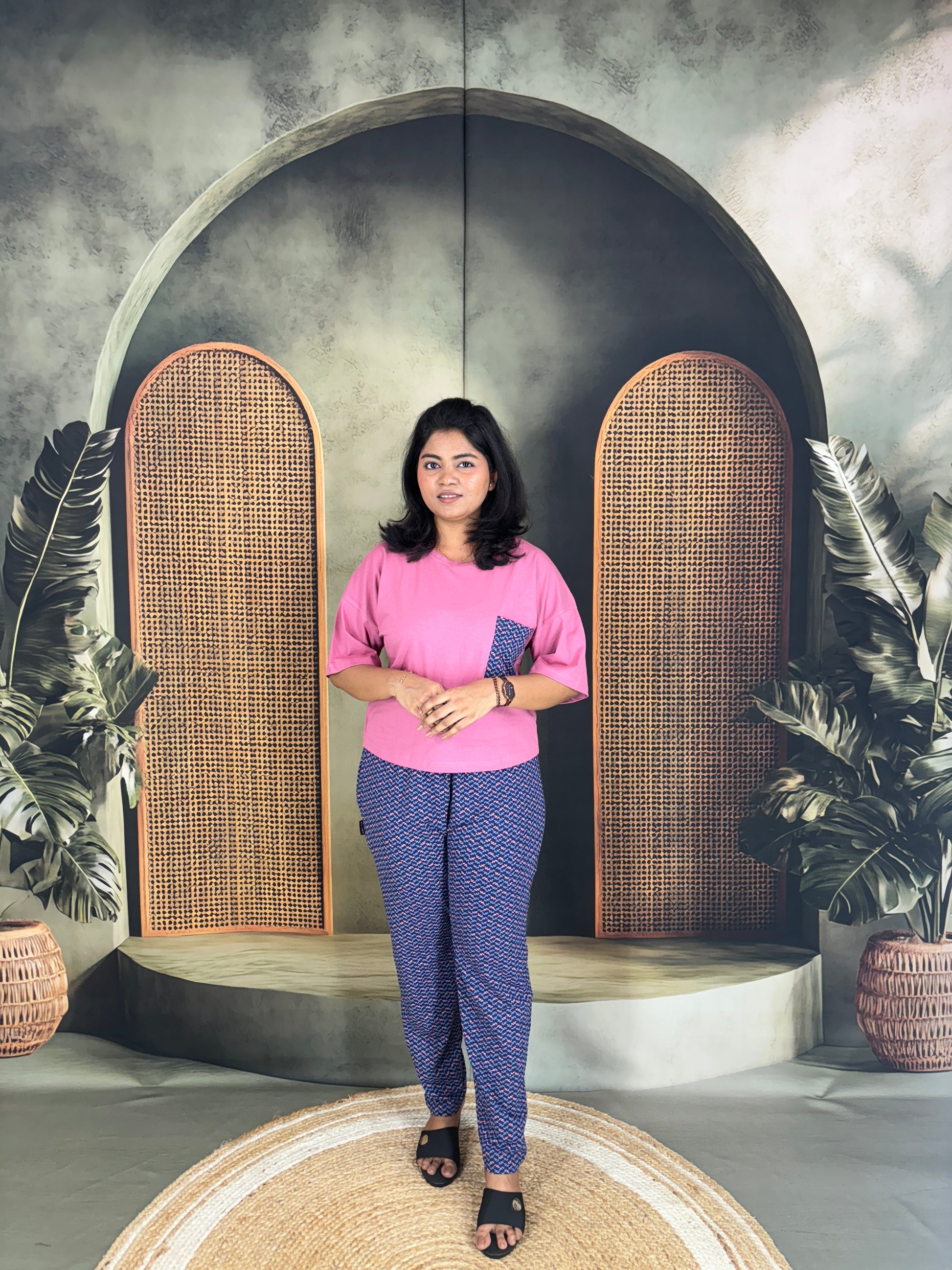 The Serah Oversized T-Shirt & Pant set for women combines breathable cotton fabric with a relaxed fit for all-day comfort. The oversized t-shirt offers a casual, easygoing style, while the matching pants provide a cozy feel. Perfect for lounging or casual wear, this set supports your comfort without compromising on style.